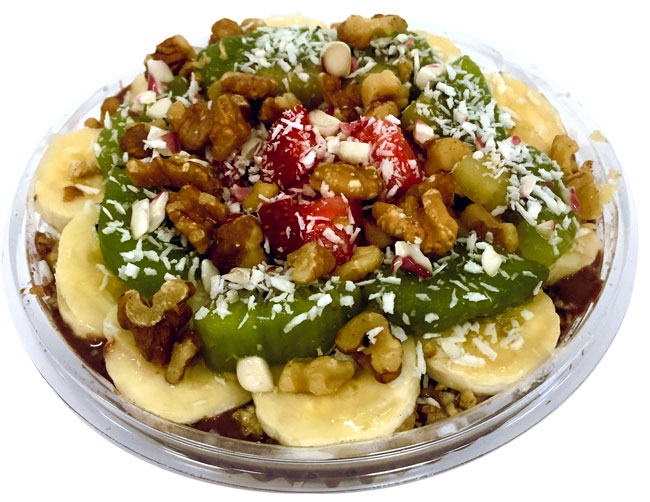 Our bowls and smoothies contain NO ice, NO dairy, NO refined sugar, NO artificial preservatives, NO trans fats, or any other fillers.